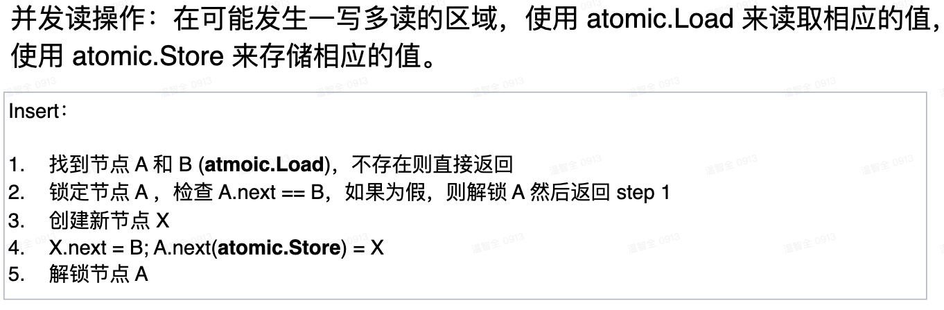 针对上述并发有序链表的缺点,可以使用跳表来提升查询性能: