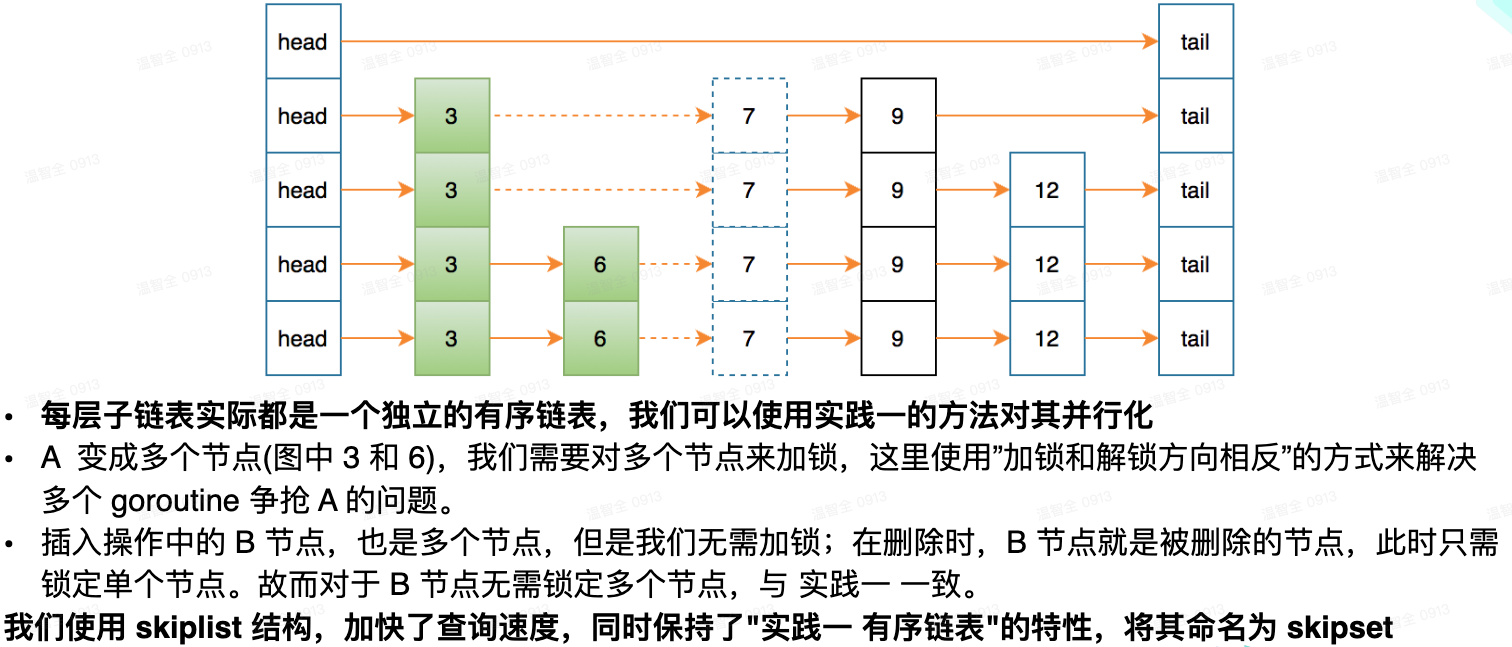 云浩老师这门课程中,从引入 Golang 本身数据结构对多核性能使用不足的场景讲起,然后由并发安全问题讲起,阐述了解决并发问题的通用方案,并基于此,提出了有序链表的并行化方案,由猜想到验证一步一步引导我们实现一个在多核场景下 scalable 的数据结构,由浅入深,令人印象深刻。
