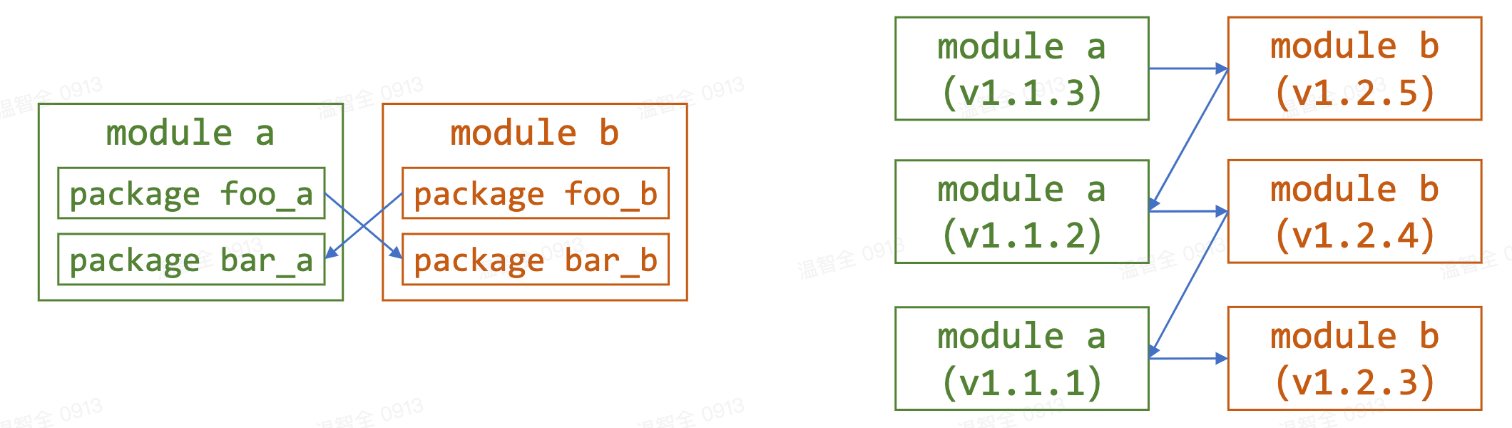 循环依赖一旦形成,内部所有依赖的所有版本都会一直保留,一旦其中一个进行了修改,就很容易出现问题
