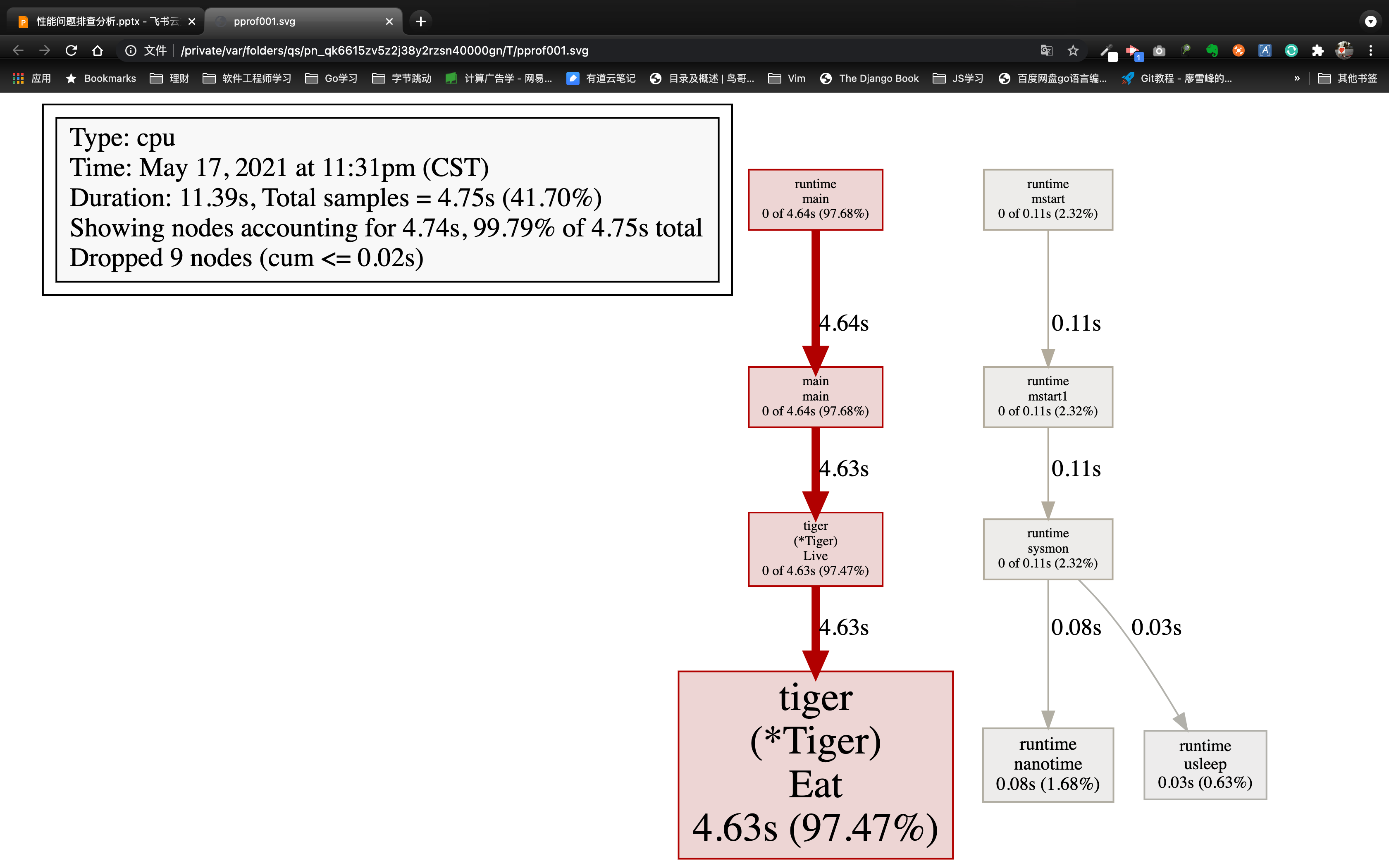 通过 Golang 提供的 pprof 工具,我们可以很轻松的对程序的 CPU,Heap,Goroutine 等进行采样,并且 pprof 工具会帮我们分析好采样数据并且以网页或可视化的方式让我们可以很直观的观察采样结果。