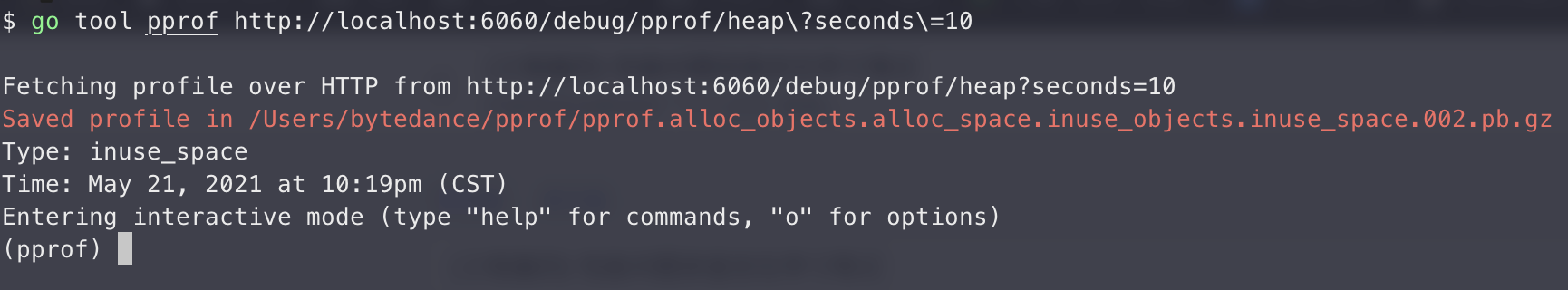 1 | go tool pprof http://localhost:6060/debug/pprof/heap?seconds=10 |