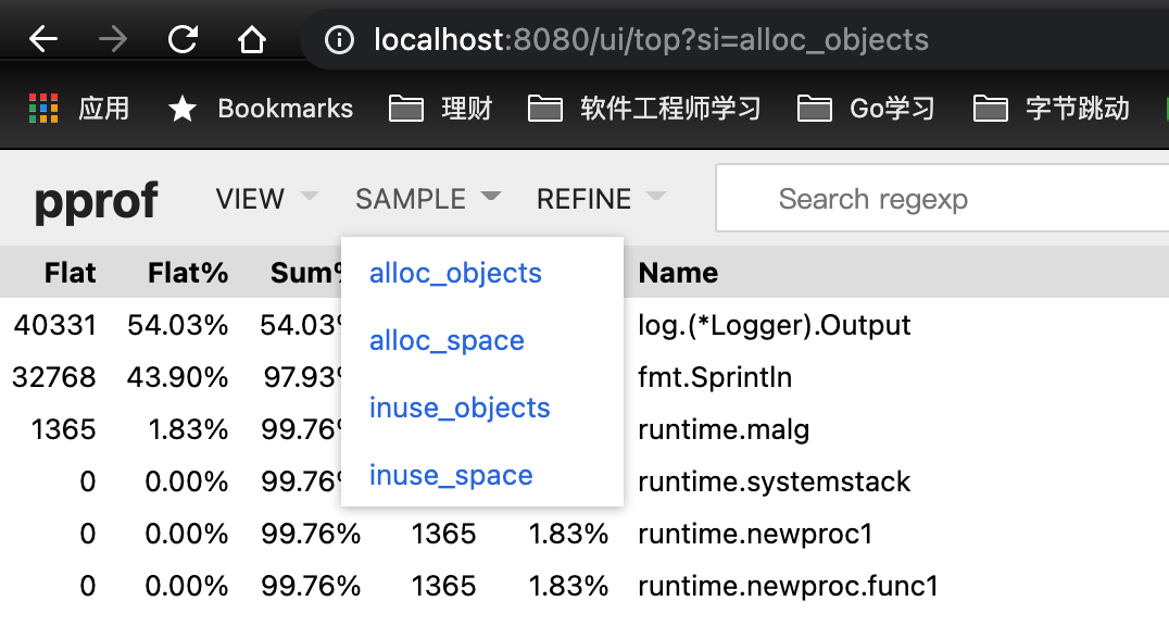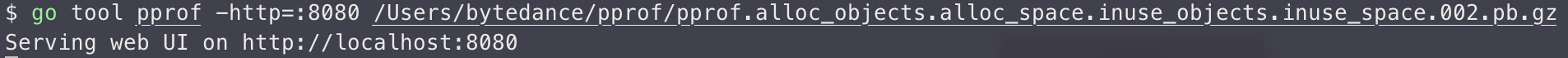 1 | go tool pprof -http=:8080 /yourPath/pprof/pprof.alloc_objects.alloc_space.inuse_objects.inuse_space.001.pb.gz |