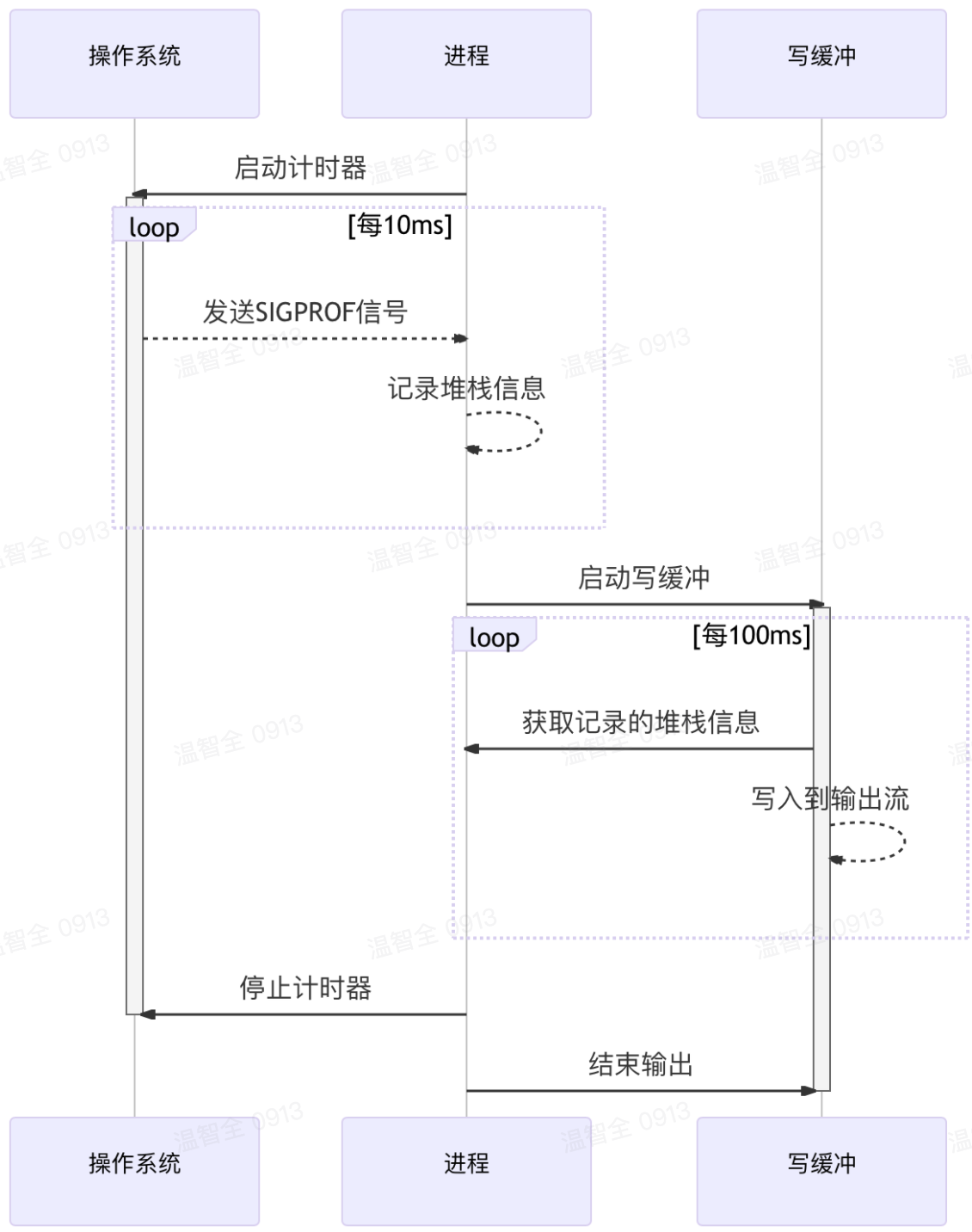 - 操作系统:每 10ms 向进程发送一次 SIGPROF 信号