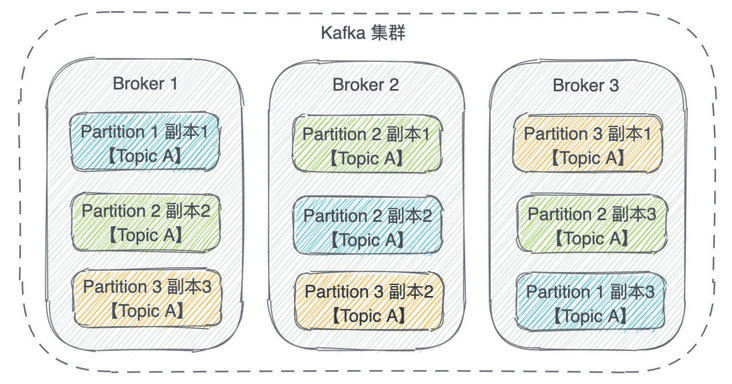 可以为 Partition 指定多个“副本”,分散在不同的 Broker,从而实现其高可用。
