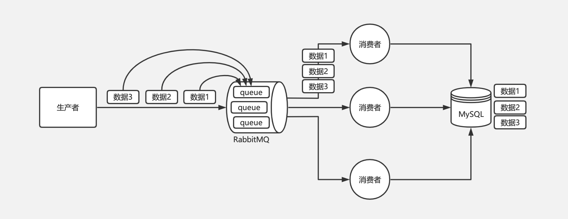 RabbitMQ 的问题是由于不同的消息都发送到了同一个 queue 中,多个消费者都消费同一个 queue 的消息。解决这个问题,我们可以给 RabbitMQ 创建多个 queue,每个消费者固定消费一个 queue 的消息,生产者发送消息的时候,同一个订单号的消息发送到同一个 queue 中,由于同一个 queue 的消息是一定会保证有序的,那么同一个订单号的消息就只会被一个消费者顺序消费,从而保证了消息的顺序性。