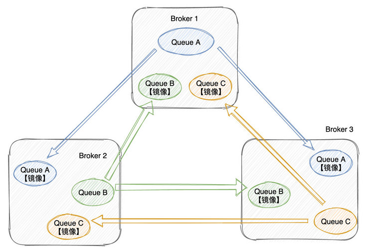 一个 Broker 中 Queue 的元数据和消息数据都会同步到其他 Broker 上,就是做了全量备份,所以称为 “镜像模式”。