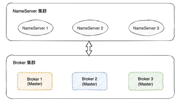 部署多个 Broker,角色都是 Master,Topic 的数据会分散存储在这些 Broker 中。
