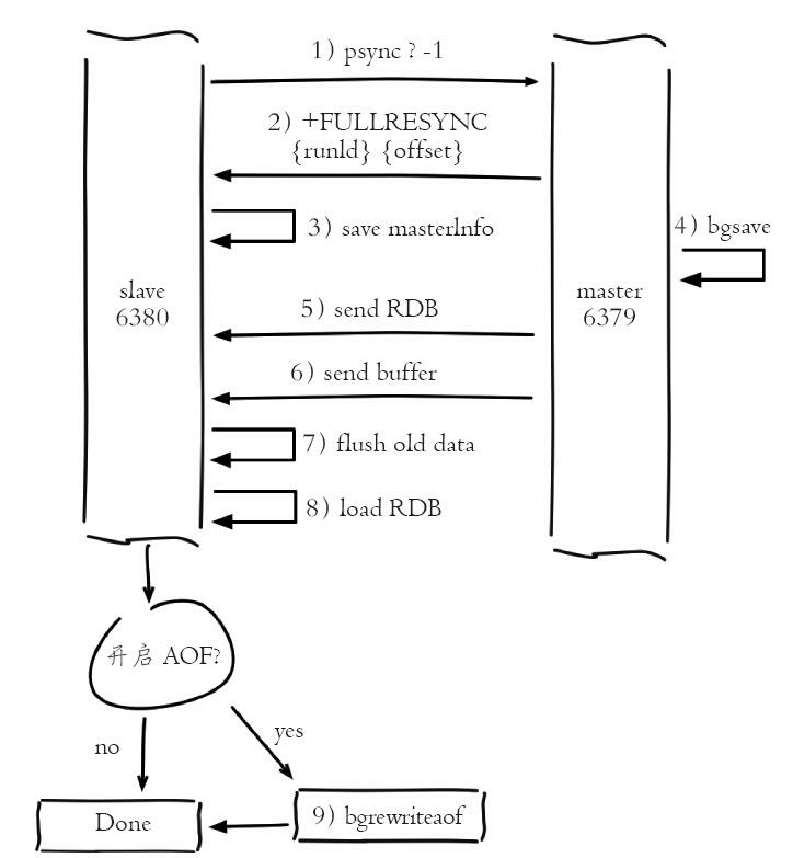 - 如果从节点执行全量复制操作,主节点自动执行 bgsave 生成 RDB 文件并发送给从节点。