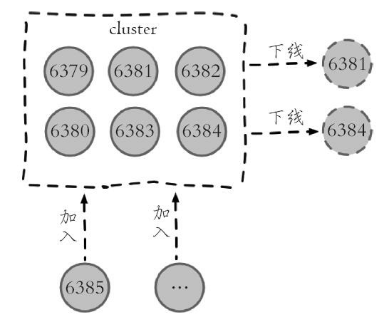 Redis 集群可以实现对节点的灵活上下线控制。其中原理可抽象为槽和对应数据在不同节点之间灵活移动。