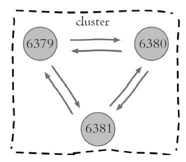 - 集群中的每个节点都会单独开辟一个 TCP 通道,用于节点之间彼此通信,通信端口号在基础端口上加 10000。