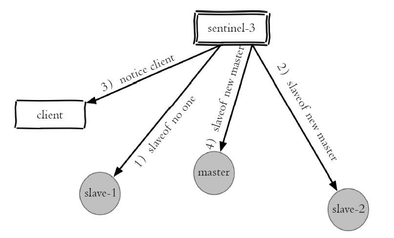 领导者选举出的 Sentinel 节点负责故障转移,具体步骤如下: