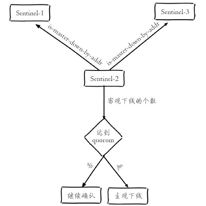 当 Sentinel 主观下线的节点是主节点时,该 Sentinel 节点会通过 sentinel ismaster-down-by-addr 命令向其他 Sentinel 节点询问对主节点的判断,当超过