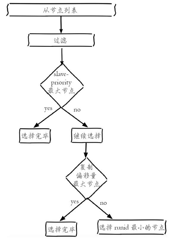 在从节点列表中选出一个节点作为新的主节点,选择方法如下: