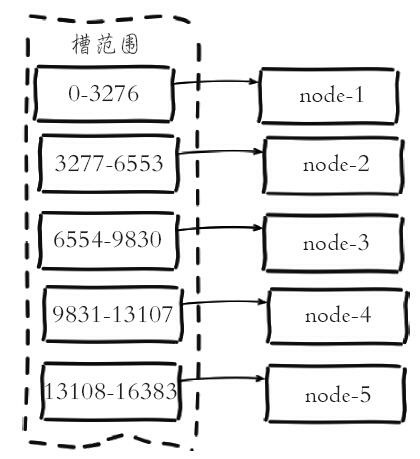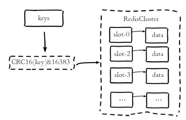 Redis Cluser 采用虚拟槽分区,所有的键根据哈希函数映射到 0~16383 整数槽内,计算公式:slot=CRC16(key)&16383。每一个节点负责维护一部分槽以及槽所映射的键值数据。